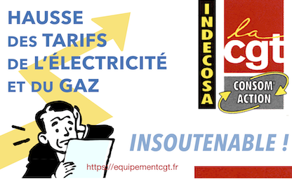 Communiqué INDECOSA-CGT du 24 juillet 2023 relatif à la hausse des tarifs de l’électricité et du gaz à partir du 1er août prochain. L’association d’INformation et de DÉfense des COnsommateurs SAlariés de la CGT dénonce le reniement, par le gouvernement, de la parole donnée (…)